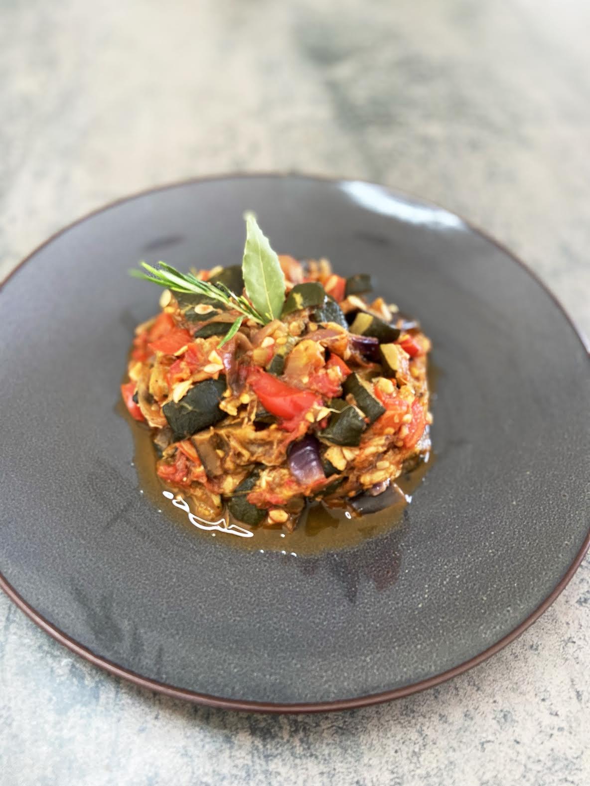 ➤ Préparation (≈1h30 en tout) :- Préchauffer le four à 200℃- Découpez vos courgettes et placez-les dans un plat, assaisonnez-les d’huile d’olive, de sel et de poivre, mélangez et enfournez pendant 15 à 20 min puis faites de même avec les aubergines- Découpez vos oignons puis vos poivrons et faites-les revenir dans une poêle avec un filet d’huile d’olive- Une fois vos courgettes et vos aubergines cuites au four (attention à ne pas trop les faire cuire) ajoutez-les dans la poêle- Ensuite ajoutez l’ail haché et les herbes dans la poêle- Épluchez vos tomates (car la peau remonte à la surface après et ce n’est pas très agréable à manger) puis découpez les en dés et ajoutez-les dans la poêle- Salez, poivrez et laissez mijotez à feu moyen pendant 30 min au moins, ne couvrez pas la poêle pour éviter qu’elle rende trop d’eau.- Une fois cuite, la ratatouille s’accompagne très bien avec un poisson blanc et du riz 😋